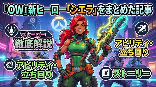 Overwatch 2の51番目の新ヒーロー「シエラ(Sierra)」が、2026年4月9日にトレーラーで正式公開されました。リリースは2026年4月14日・シーズン2「Summit」開幕と同日。飛行ドローン「Dorothy」と追尾弾を組み合わせた独自スタイルのDPSヒーローで、すでに「ランク最強候補」と話題になっています。この記事ではシエラの能力・ロール・プレイスタイル・対策まで最新情報をまとめました。